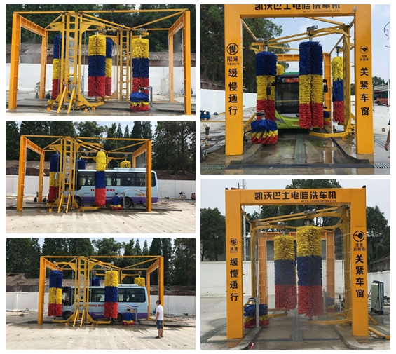 中国-四川省德阳市什邡市汽车站安装凯沃大巴6刷通过式电脑洗车机调试现场拍摄……
